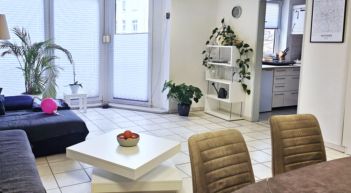 Die U-Bahn „Lippestraße“ ist nur drei Minuten entfernt. Direkt am Haus gibt es (nach Absprache) bis zu zwei kostenlose Parkplätze. Weitere kostenpflichtige Parkplätze findest du direkt vor der Tür.